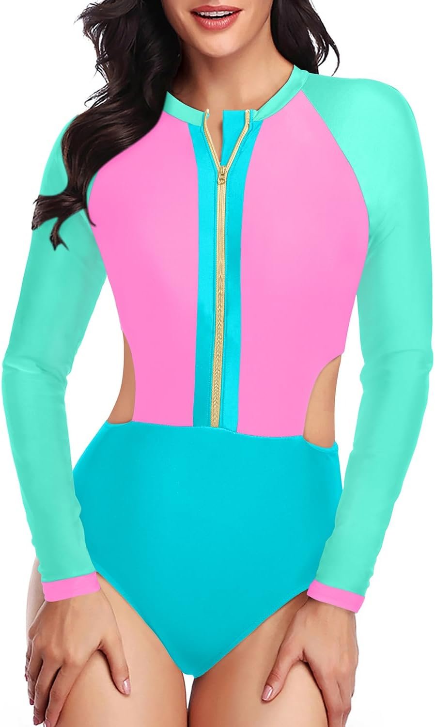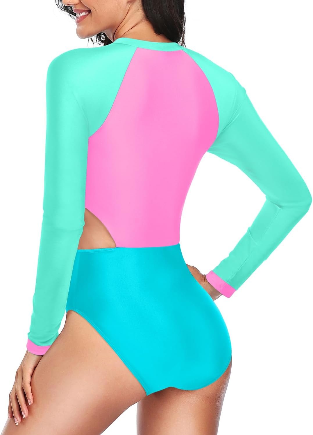 - Long Sleeve Swimsuit: The black one piece rash guard offers a stylish and charming look for swimming, surfing, diving, water skiing, paddle boarding, and water yoga.