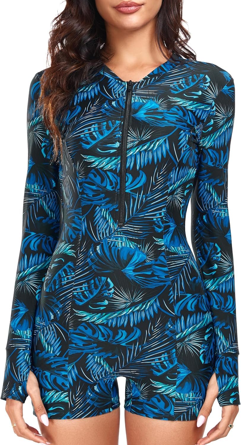 Women’s Long Sleeve One Piece Bathing Suit Athletic Boyleg One Piece Swimsuit Sun Protection Rash Guard
